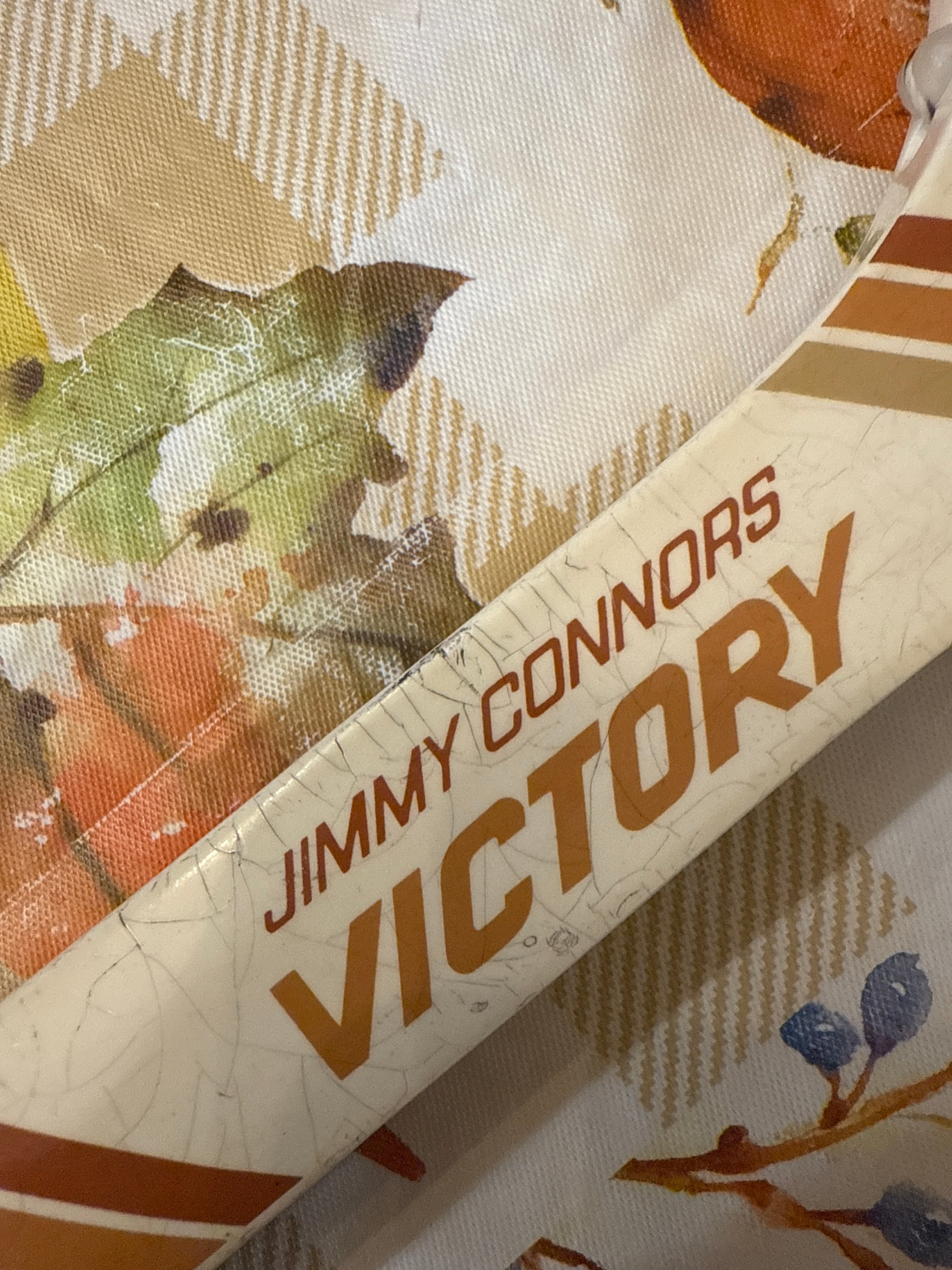 - Design: Cream throat with brown/gold stripes and “Jimmy Connors Victory” branding
